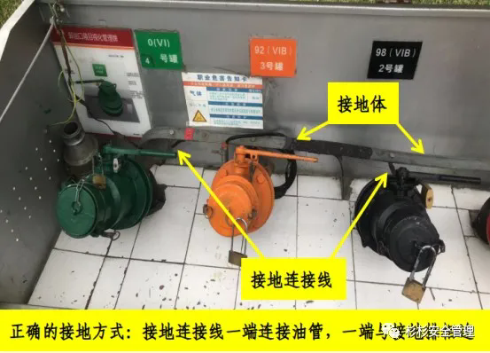 接地連接線一端連接油管,一端與接地體相連。(來(lái)源:微信公眾號(hào):杉杉安全管理,網(wǎng)址:卸油口的管理要求)