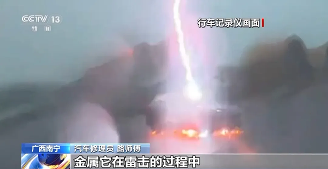 8月5日,在廣西北海鐵山服務(wù)區(qū)發(fā)生驚險一幕,當(dāng)時正在下雨,一輛緩慢行駛的汽車,突然被一道閃電擊中,現(xiàn)場有火光閃現(xiàn),小車當(dāng)即停車,車上人員無大礙。無獨(dú)有偶,8月2日,在滬昆高速浙江境內(nèi),一輛行駛的小車也被一道閃電擊中,好在駕駛員冷靜應(yīng)對,及時把車停到應(yīng)急道上。