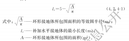 3.1對環(huán)形接地體所包圍面積的等效圓半徑小于5m時(shí),每一引下線處應(yīng)補(bǔ)加水平接地體或垂直接地體。當(dāng)補(bǔ)加水平接地體時(shí),其最小長度應(yīng)按本規(guī)范式(4.2.4-1)計(jì)算;當(dāng)補(bǔ)加垂直接地體