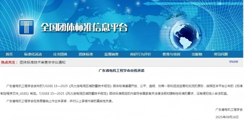 日前,廣東省電機工程學(xué)會發(fā)布《風(fēng)力發(fā)電場區(qū)域防雷技術(shù)規(guī)范》(T/GSEE 15-2025),這一全國首創(chuàng)的風(fēng)電場區(qū)域防雷團(tuán)體標(biāo)準(zhǔn)已于2025年9月10日正式實施,標(biāo)志著我國風(fēng)力發(fā)電場防雷保護(hù)工作邁入標(biāo)準(zhǔn)化、規(guī)范化的新階段。